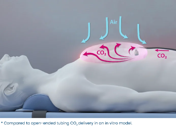 Compared to open-ended tubing CO2 delivery in an in vitro mode