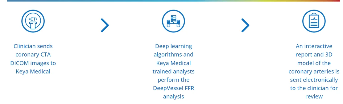 DEEPVESSEL FFR (DVFFR) is a software medical device that utilizes deep learning technology to assess the physiological function of coronary arteries non-invasively through coronary computed tomography angiography. By processing coronary CTA images and creating a 3D model of the artery tree, it calculates DVFFR values, generating a PDF report for physicians. The system aims to aid in the functional evaluation of coronary artery disease, employing Keya Medical's proprietary DeepVessel and DeepFFR techniques, which offer high performance, fast processing, and precise non-invasive FFR analysis.
